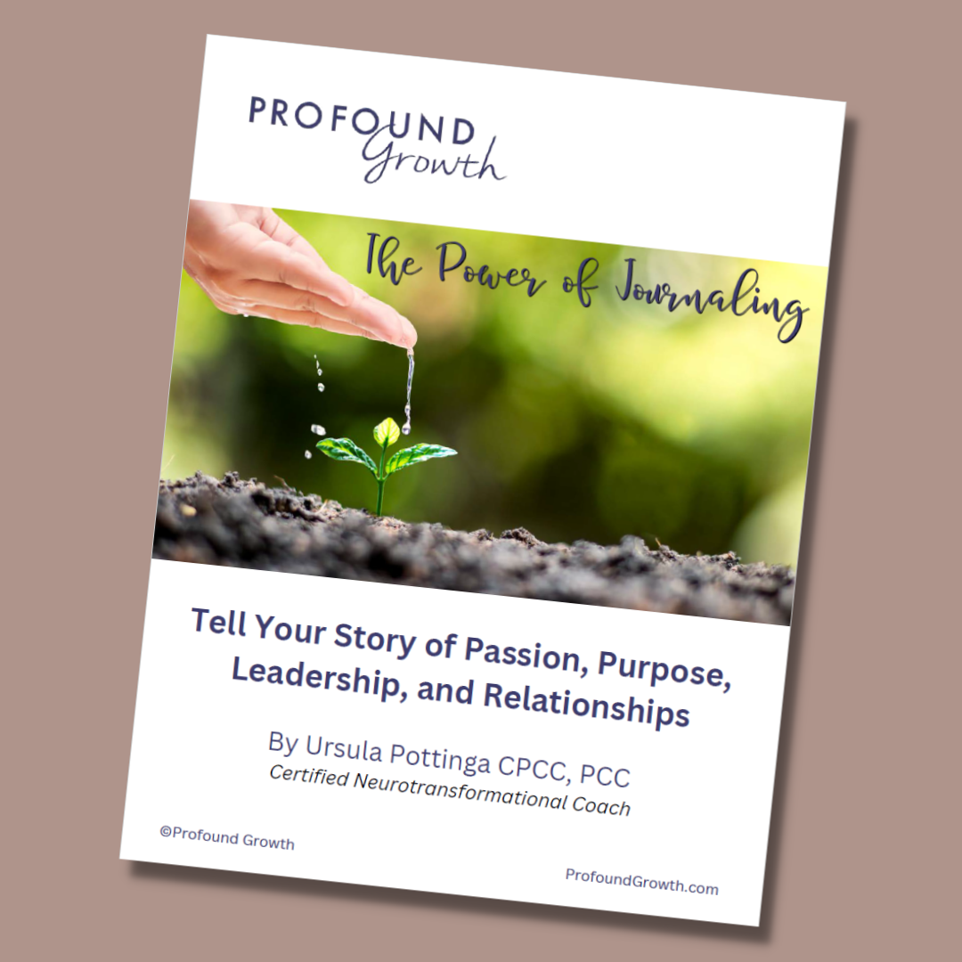“The Power of Journaling - Tell Your Story of Passion, Purpose, Leadership, and Relationships” e-book is based on the four pillars of the Profound Growth Path and Process. This ebook and journal help our Profound Growth clients (especially executive clients) reflect on how to impact culture, strengthen relationships, live and lead with purpose and passion, and forge new pathways.